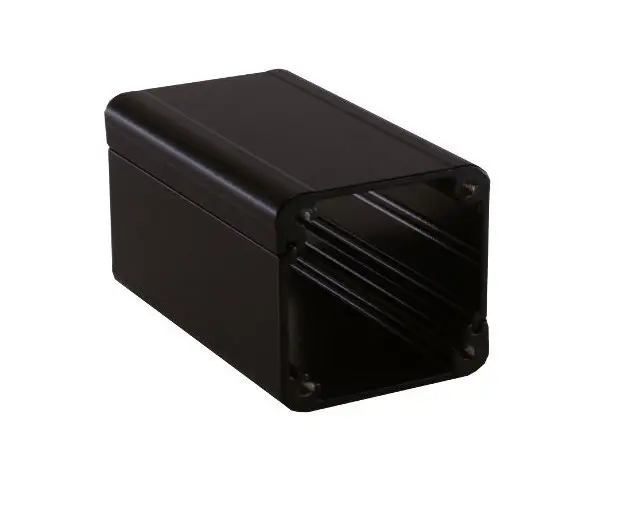 Schwarzes, leeres BoXo Mini Universalgehäuse mit M3-Gewinden, für die Eigenkonfektion mit XLR-Einbausteckverbindern, ohne Frontplatten.