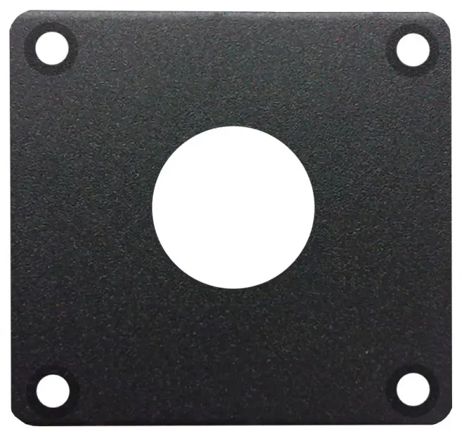 Schwarze, leere BoXo Mini Frontplatte mit einem M16-Ausschnitt.