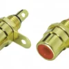 Die Cinch-Einbaubuchsen sind eine Spezialanfertigung in vergoldeter Ausführung. Sie werden mit 2 Muttern und 2 Isolierringen paarweise ausgeliefert, die Bohrung ist 8 mm.
