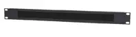 Schwarzes (RAL 9005), pulverbeschichtetes 19″ Rack-Managementpanel mit Nylon-Bürsten. Das Panel aus 1,5 mm dickem Stahl hat 1 HE und eine stabile U-Form mit einer Öffnung von 370 x 26 mm.