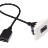 Schwarze FLF-Montageplatte, bestückt mit einem DisplayPort-Kabel female/female (Länge: 20 cm).
