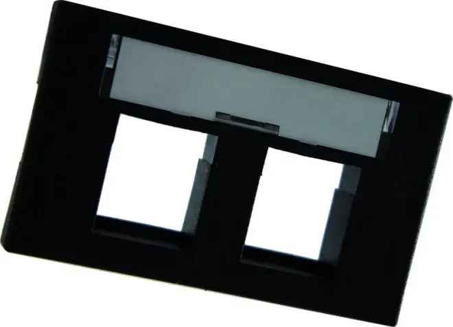FLF Montageplatte mit Kunststoffklammern, Ausschnitt für 2 x RJ45-Einsätze, inkl. Bezeichnungsstreifen, unbestückt