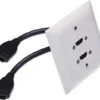 Weisses Unterputz-Montageset EDIZIOdue, bestückt mit einer DisplayPort-Kabelpeitsche female/female von ca. 15 cm Länge und einem Abdeckrahmen aus Kunststoff. Die Kabelpeitsche ist geschraubt.