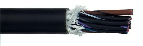 Schwarzes, analoges Multicore-Kabel, 16 x 2 x 0,22 mm², paarweise geschirmt und isoliert, mit PVC/Gummi-Mantel und einem Aussendurchmesser von 16,9 mm ± 0,5 mm.
