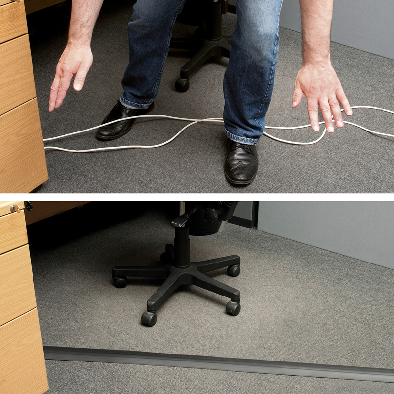 D-Line Aufbodenkanal 60x12mm 1.80m schwarz, PVC, UV beständig, bis zu 2x Kabel mit 8 mm Durchmesser, geriffelt, rutschfester Aufbodenkanal