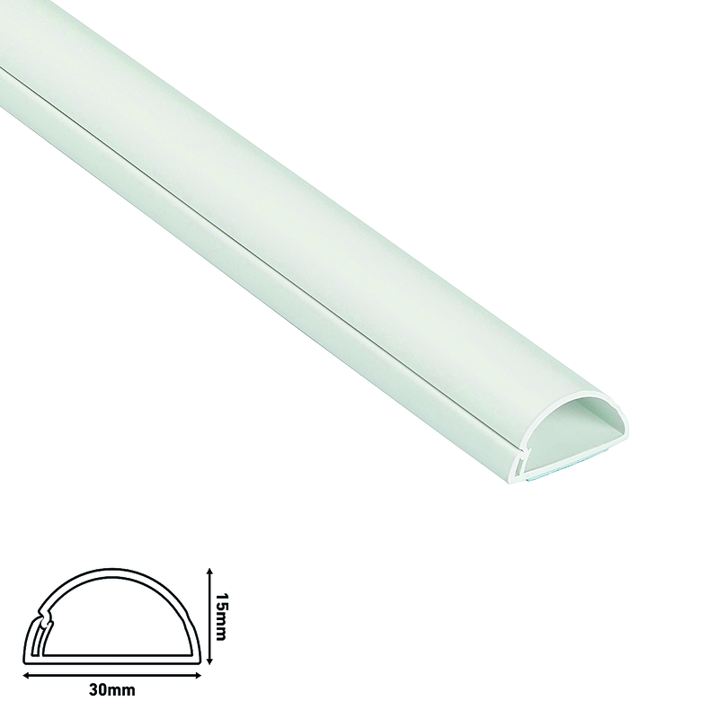 D-Line Kabelkanal halbrund 30x15mm Stange 2m weiss, coextrudierter Kippdeckel mit Schutzfolie, überstreichbar, UV-Beständig