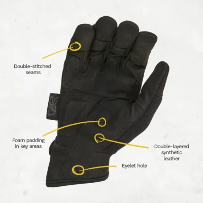 - Doppel-Lagen Kunstleder und abriebfeste Stellen: Handfläche & stark beanspruchte Zonen sind doppelt geschützt. :contentReference[oaicite:4]{index=4}