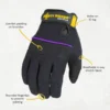 - Robuster Schutz: Aramidverstärkungen und abriebfeste Materialien in Palmar-Bereichen und verstärkt an Fingern und Handfläche bieten hohe Strapazierfähigkeit.