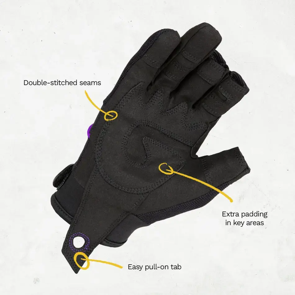 - Verstärkte Handfläche & abriebfeste Bereiche