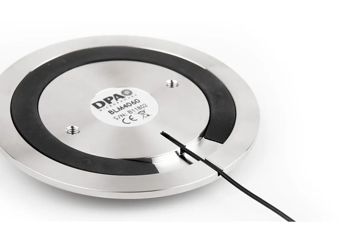 Die Benutzer werden von den speziellen Merkmalen des umgebenden Schallfelds profitieren, auf dem das Mikrofon montiert ist: 6 dB Verstärkung von direktem Klang und nur 3 dB Verstärkung von diffusem Klang. Im Vergleich zu dem Klang über der Oberfläche wird der Sound, insbesondere bei hohen Frequenzen, mit grösserer Klarheit und Sprachverständlichkeit erfasst.Das Mikrofon verwendet die CORE by DPA-Technologie und bietet zwei M5-Gewindebohrungen auf der Rückseite, sodass es dauerhaft am Tisch befestigt werden kann. Ausserdem kann das schlanke Kabel entweder durch oder über den Tisch geführt werden. Eine grosse Auswahl an Verbindungsadaptern und unterstützten Versorgungsspannungen ermöglicht die Verwendung des 4060 Grenzflächenmikrofons mit Kugelcharakteristik mit jedem Mikrofoneingang. Es wird mit einem DAD6001 XLR Adapter geliefert. Da das mitgelieferte Kabel jedoch an einem DPA MicroDot-Stecker endet, kann dieses Mikrofon über das flexible Adaptersystem mit einem Drahtlos-System verbunden werden.