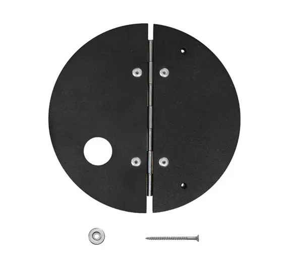 Abdeckplatte mit Klappe aus Metall mit beiliegendem Magnet-Set.