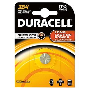 Duracell Watch Silver Oxide Batterien 1.55V D364 SR60 Blister mit 1 Stück
