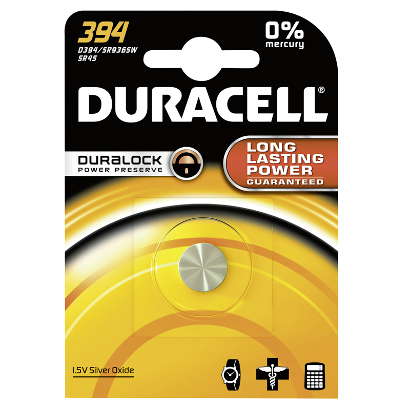 Duracell Watch Silver Oxide Batterien 1.55V D394 SR45 Blister mit 1 Stück