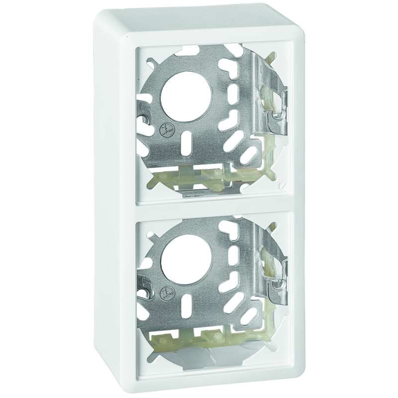 EDIZIOdue Aufputz Abdeckrahmen 2-FACH (2x Einheitsausschnitte), mit Befestigungsbügel, H=39mm, weiss