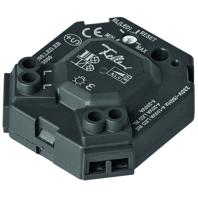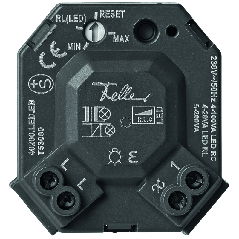 FELLER LED-UNIVERSAL-Dimmermodul 5-200VA (LED 4-100W), für konventionelle und elektronische Transformatoren, ansteuerbar über externe Taster / Einbau hinter mechanischen Taster, geeignet für dimmbare LED-Leuchtmittel, für NV-Halogenlampen, Glüh- und HV-Halogenlampen, mit Schraubklemmen, weiss