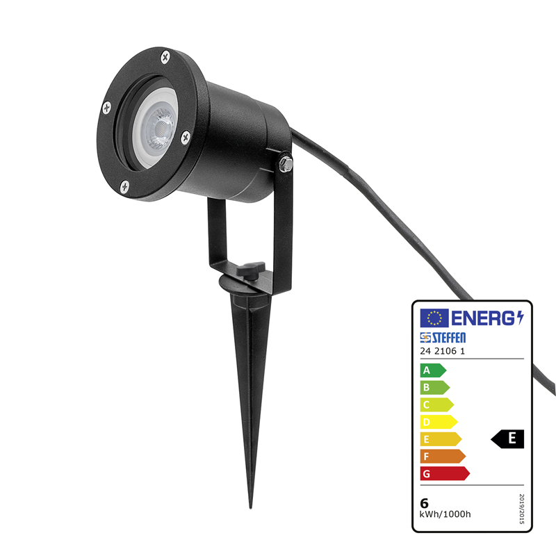 GardenLine Spot mit LED-Lampe 6W GU10, robustes Aluminium-Gehäuse mit Erdspiess, IP65, 3m Gd Kabel 3x1mm2 mit Stecker T13, H: 315mm B: 92mm