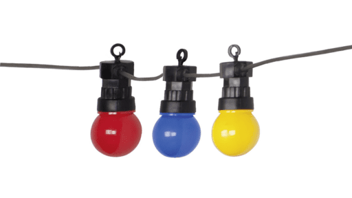 GardenLine LED Party-Lichterkette outdoor, mit Leuchtmittel, farbig (3xblau 0,3W, 2xgrün 0,3W, 2xgelb 0,2W, 3xrot 0,2W), IP55, Anschlusskabel (Primär Gummikabel 2×0.75mm2, Sekundär PVC-Kabel 2×0.2mm2) 10.5m (7.5+3) mit Stecker T11