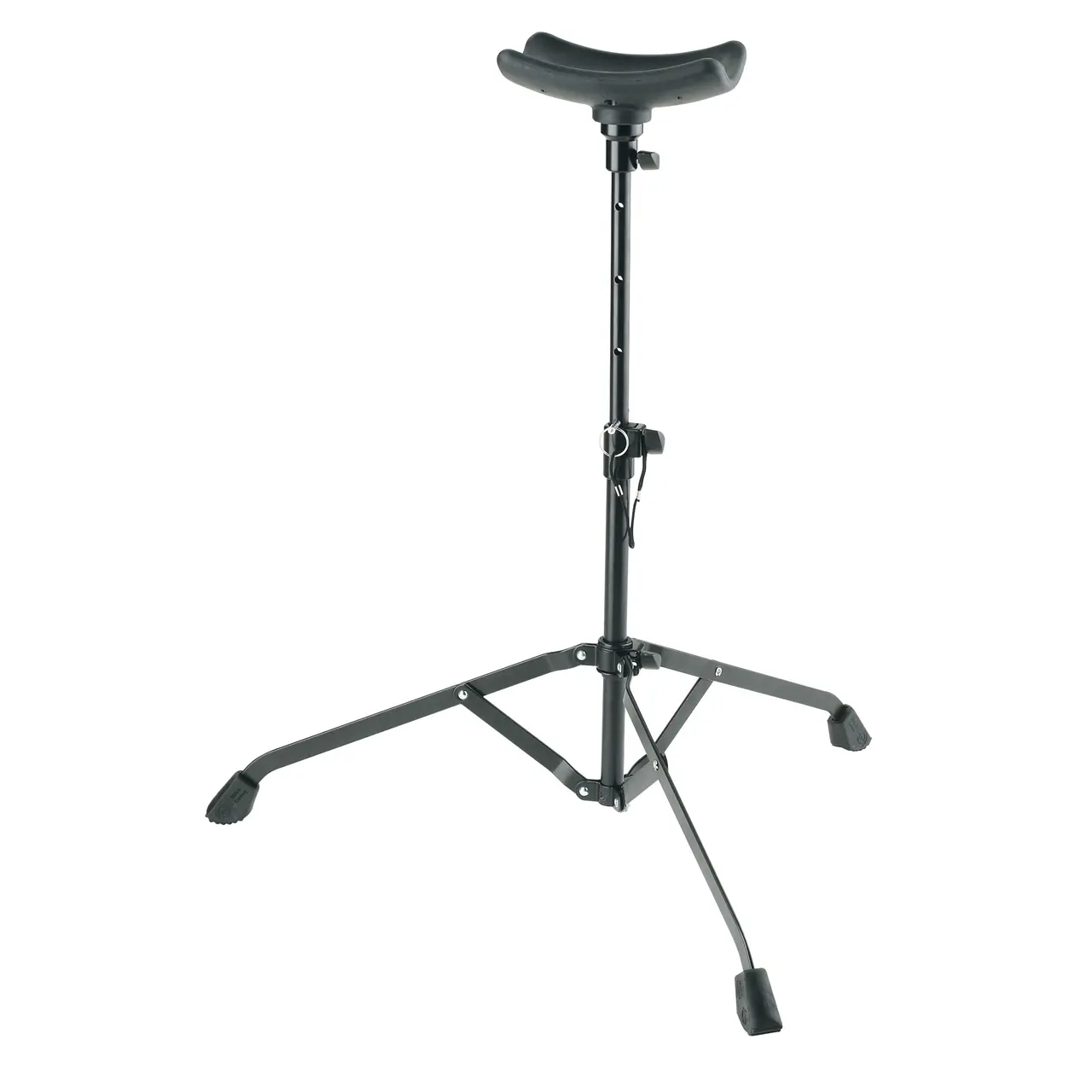 Für alle Tuben. Breite, zusammenlegbare Fußkonstruktion und höhenverstellbare Rohrkombination. Gummigepolsterte Instrumentenauflageschale.