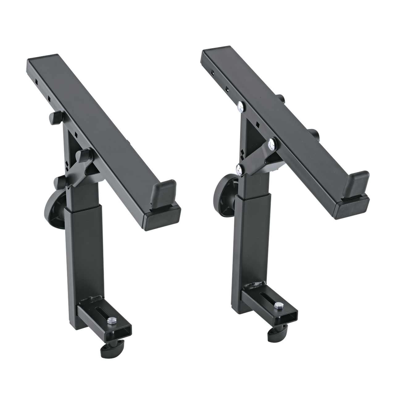 Aufsatz für 3. Ebene bei den Keyboard Ständern »Omega-E« 18800, »Omega« 18810 und »Omega Pro« 18820. Der Aufsatz lässt sich einfach und schnell durch einen Rast- und Klemmknopf auf die gewünschte Höhe positionieren. Zudem sind Tiefe und Neigung in verschiedenen Positionen einstellbar.