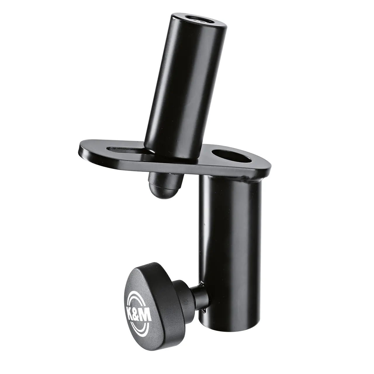 Stabilität und Standfestigkeit des Stativs oder der Distanzstange. Die Verstellmöglichkeit in der Tiefe beträgt bis zu 50 mm. Der Bolzen zur Aufnahme der Lautsprecherbox hat einen Durchmesser von 35 mm und eine Höhe von 84 mm. Solide Stahlkonstruktion mit robuster Pulverbeschichtung. Komfortable Klemmschraube zur Befestigung auf dem Boxenstativ.
