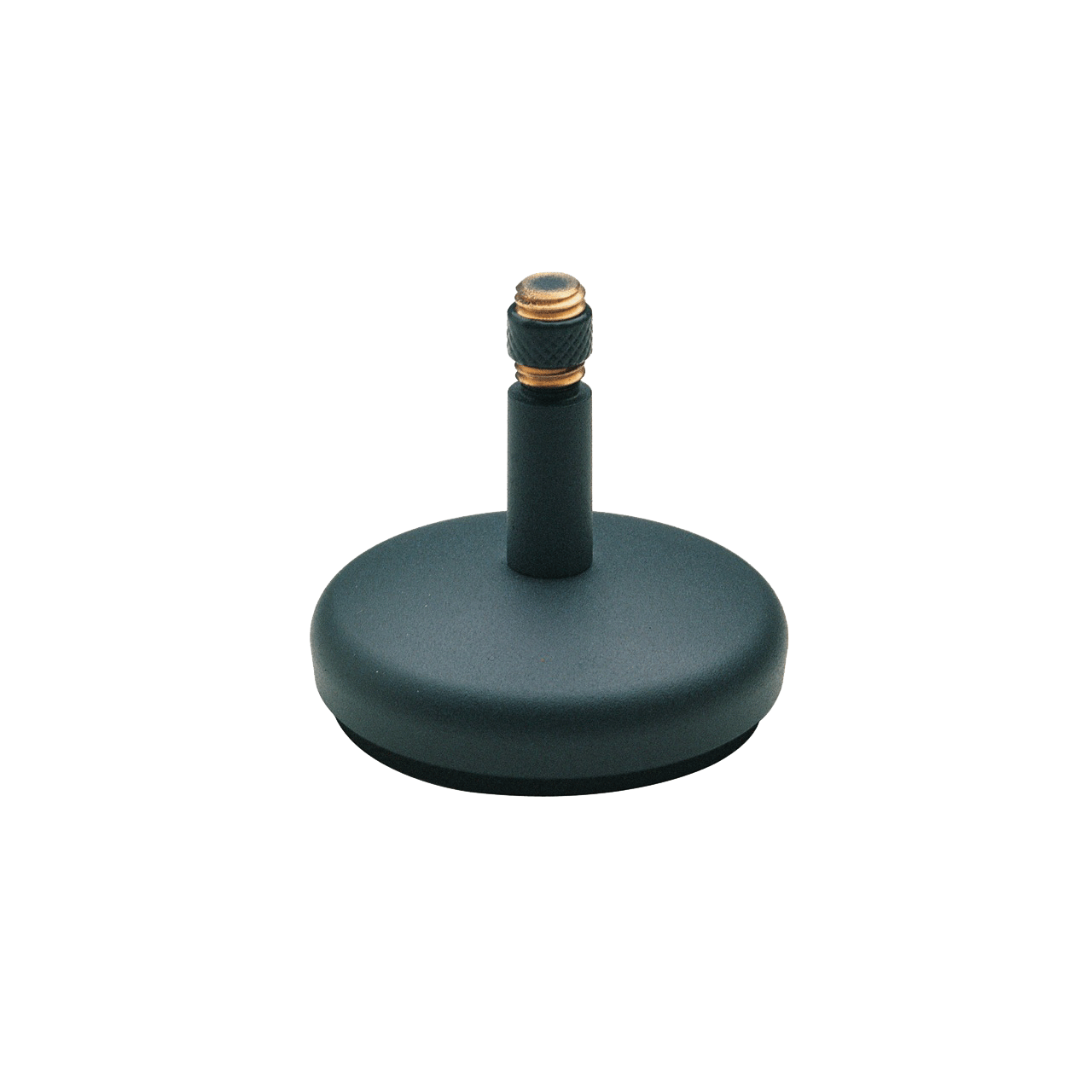 Formschönes und kleines Mikrofonstativ mit kompaktem Rundsockel. Trittschallgedämpft durch Filzauflage. 3/8" Gewindeanschluss.