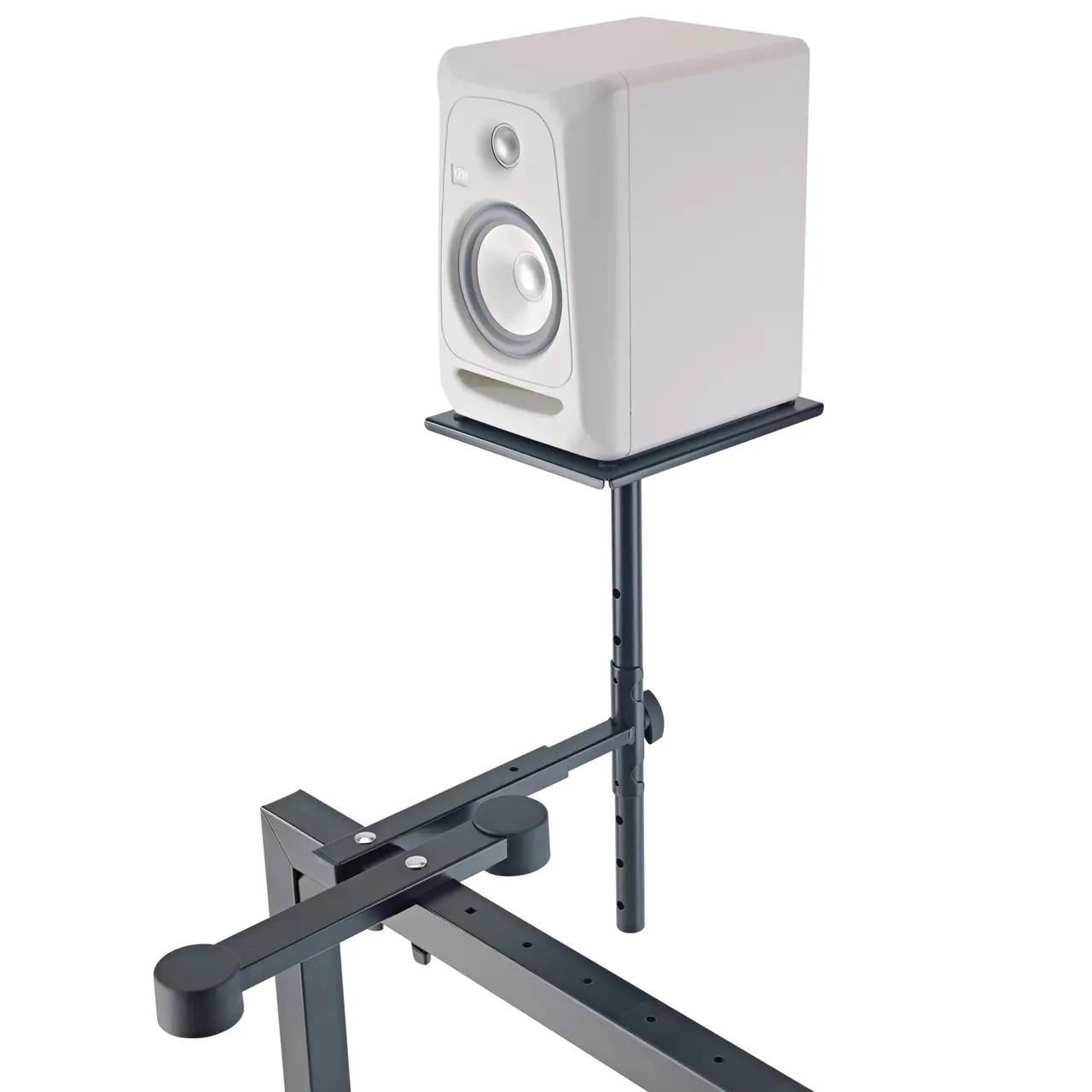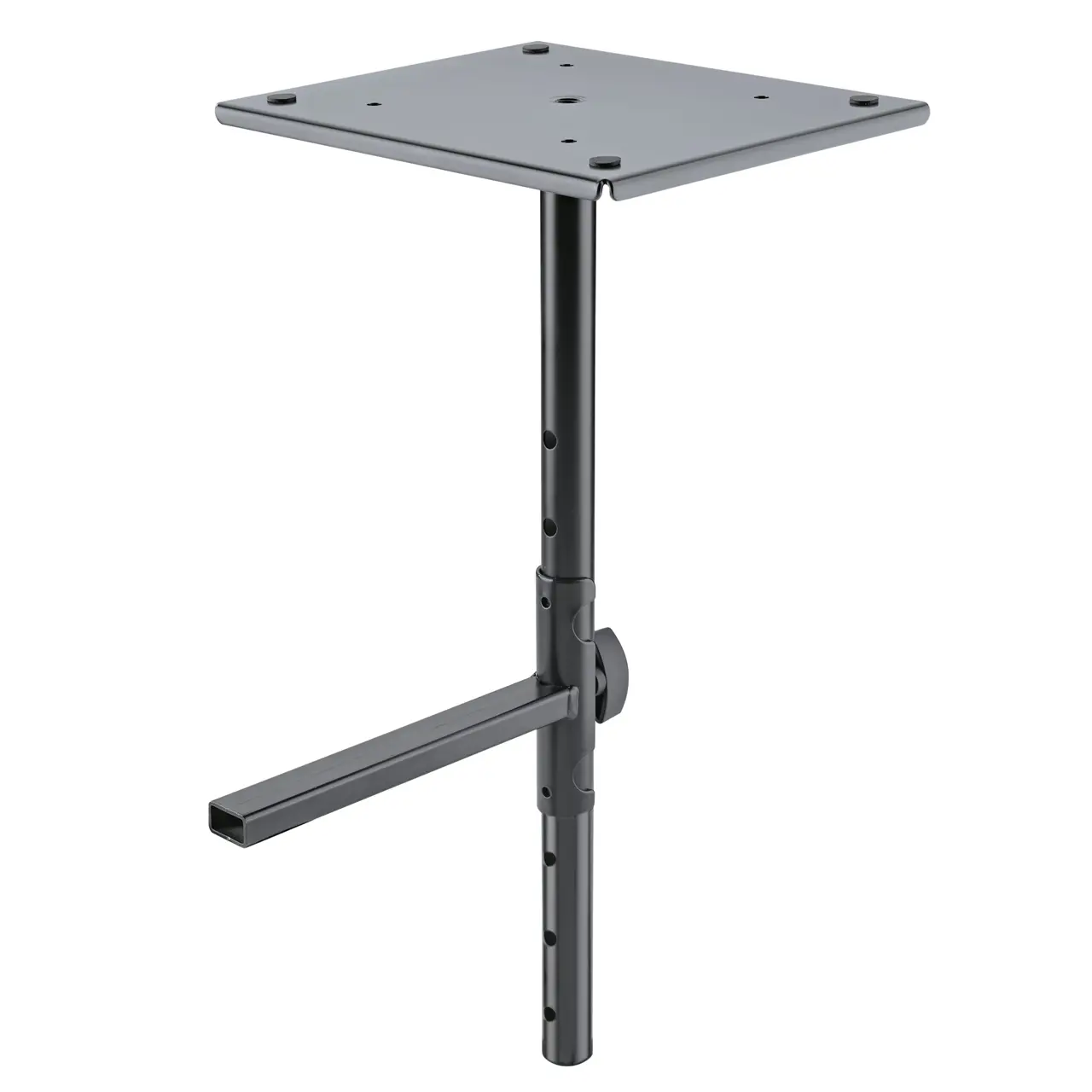 Ablageplatte aus Stahlblech mit strapazierfähiger Pulverbeschichtung für kleine und mittelgroße Abhörmonitore. Das Plattenmaß beträgt 245 x 205 mm. Zur Befestigung auf Stativen oder Halterungen mit 3/8" Gewindeanschluss. Im Lieferumfang enthalten sind 4 selbstklebende Gummiauflagen, die individuell positioniert werden können.