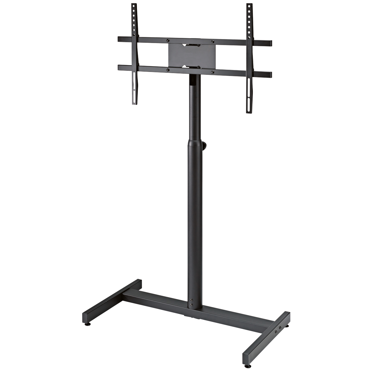 Hohe Standsicherheit und komfortables Handling sind die besonderen Eigenschaften dieses beeindruckenden Bildschirmstativs. Die Universalhalterung ermöglicht die Befestigung nach VESA-Standard für Flachbildschirme von 42" bis 65". Zwei Leisten werden dazu auf der Rückseite des Bildschirms angeschraubt und danach einfach am Stativ eingehängt. In der groß dimensionierten Rohrkombination werden die Kabel platzsparend und übersichtlich aufgenommen. Die Höhenverstellung erfolgt stufenweise mittels einer ergonomischen Rast-Klemmschraube. Dank der integrierten Stellfüße können Bodenunebenheiten einfach ausgeglichen werden und ermöglichen so einen stabilen Stand.