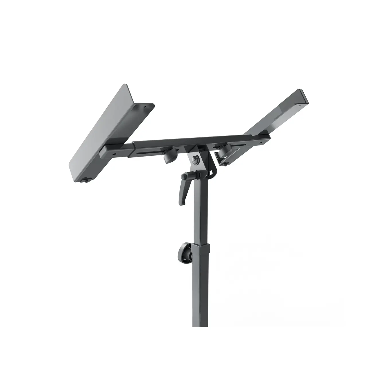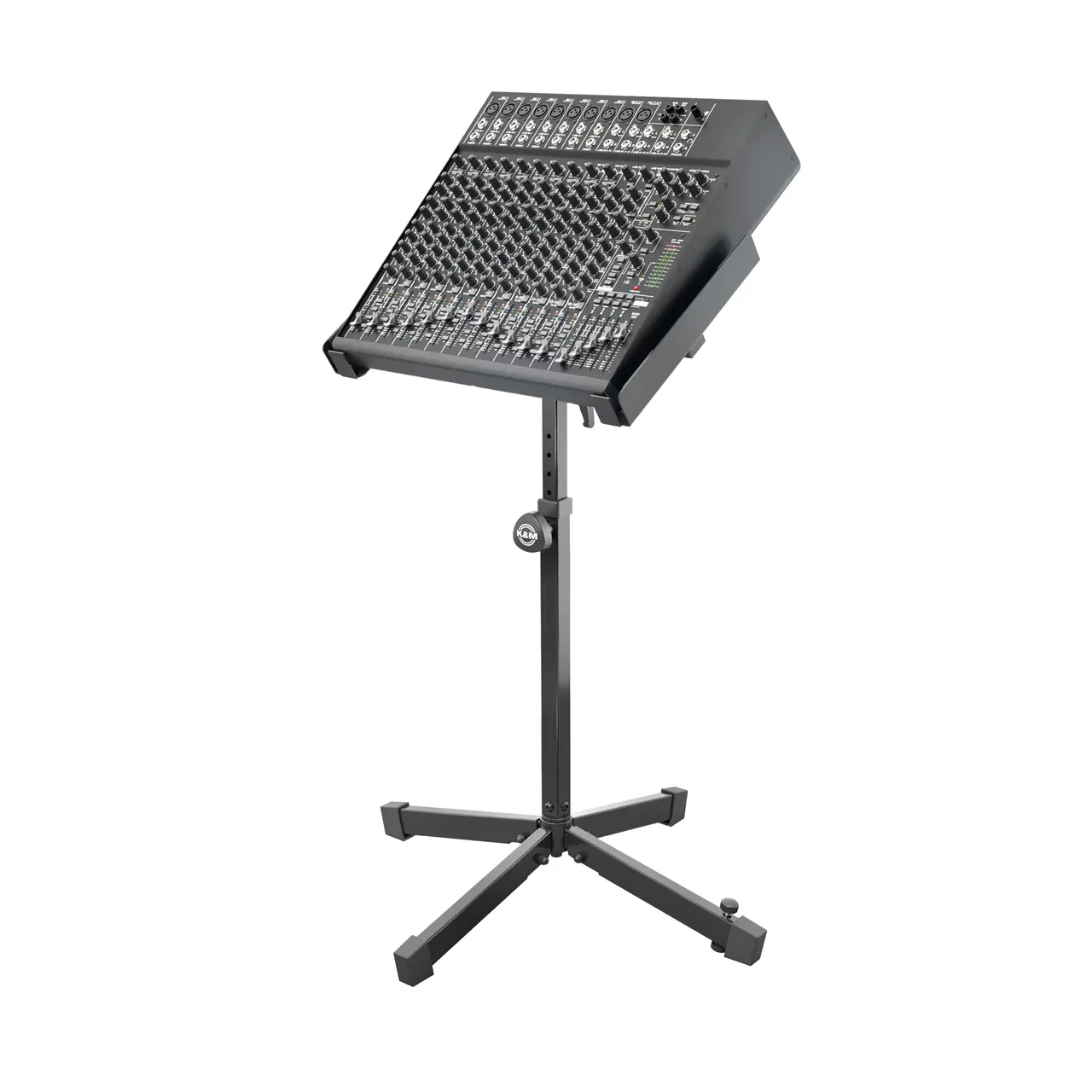 Extrem stabiler und robuster Spezialständer für Mischpulte, Verstärker und viele andere Anwendungen. Die Höhe der Stahlrohrkonstruktion kann von 700 bis 1050 mm eingestellt werden. Für einen wackelfreien Stand ist die klappbare Vierfuß-Fußkonstruktion mit einer Bodenausgleichsschraube ausgestattet. Die klemmbare Instrumentenhalterung bietet Platz für Geräte mit einer Breite von 455 bis 665 mm und ist für eine optimale Bedienposition bis 45° stufenlos neigbar. Die Auflagentiefe beträgt 310 mm. Breite Filzstreifen schützen das Instrument vor Beschädigungen. Für den Transport lässt sich der Ständer einfach und leicht zusammenklappen.Produktdaten:
