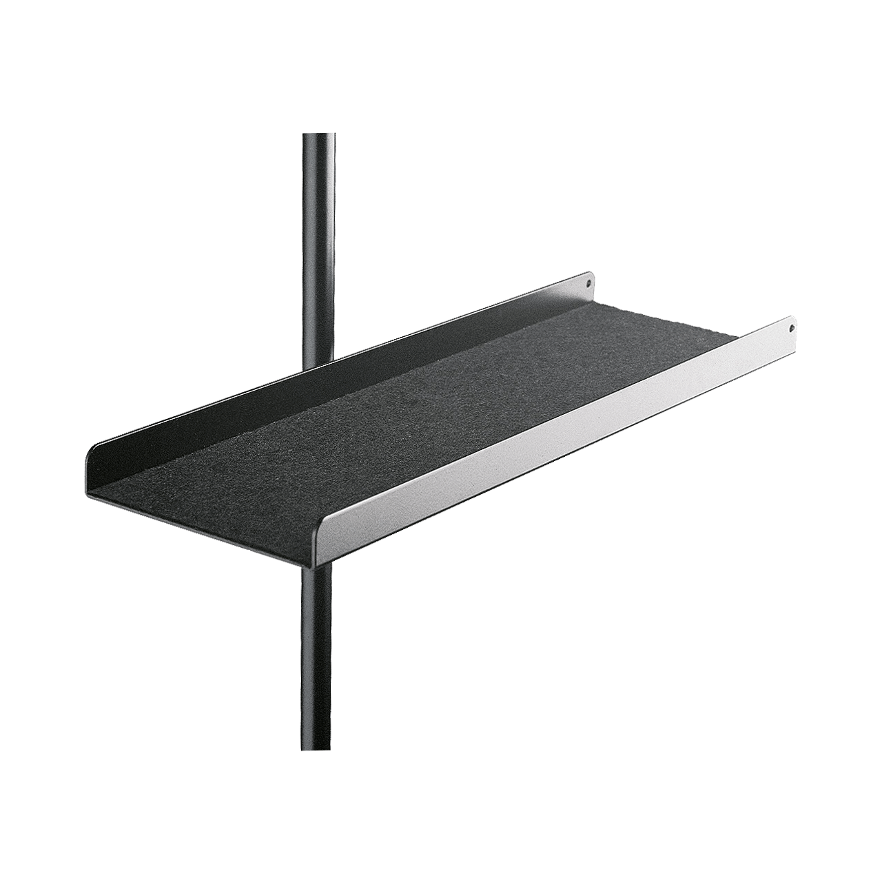 Praktische Noten- und Instrumentenablage aus Aluminium, innnenseitig mit Filz beklebt. Anklemmbar an alle K&M Stative bis Rohr-ø 30 mm