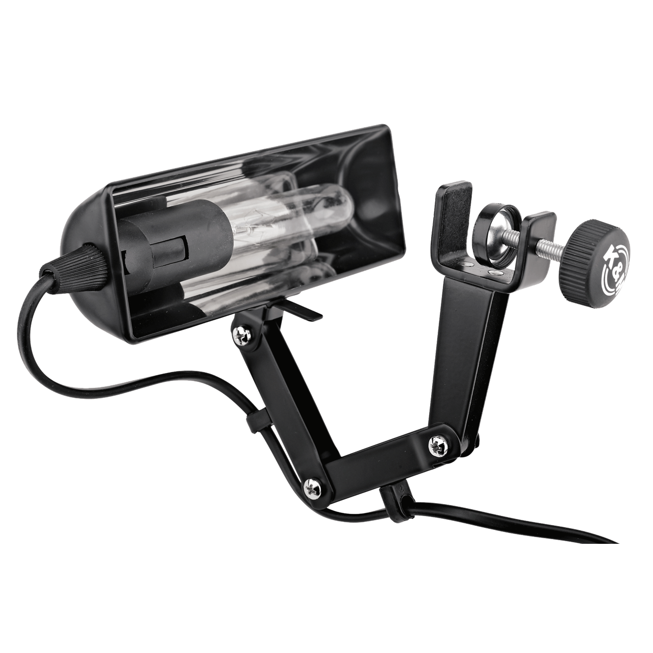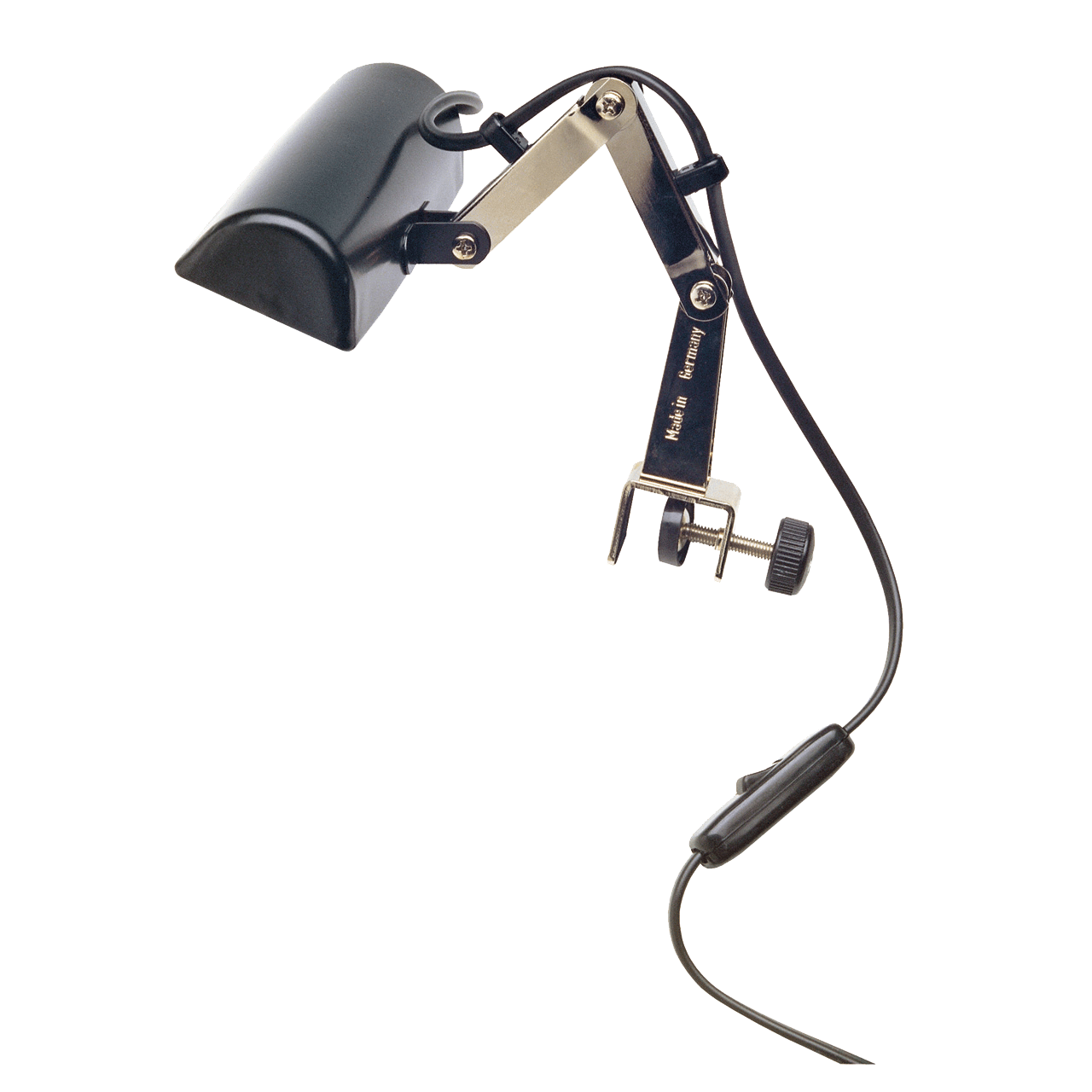 Klassische Notenpultleuchte mit Kippgelenk. 2 m Anschlusskabel mit Kabelschalter, Euro-Stecker und 1 Röhrenleuchte sind im Lieferumfang enthalten. Nur Röhrenleuchten bis max. 25 W verwenden! Leuchte ist im Freien nicht verwendbar.