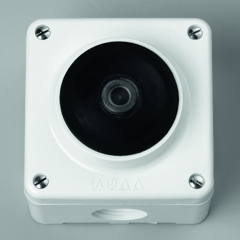 MICA Aufputz Nass-Druckschalter SCHEMA 3, beleuchtet mit Frontlinse (als Orientierungsbeleuchtung), 2x Einführungen M20 vorhanden, mit Schraubklemmen, IP54, weiss