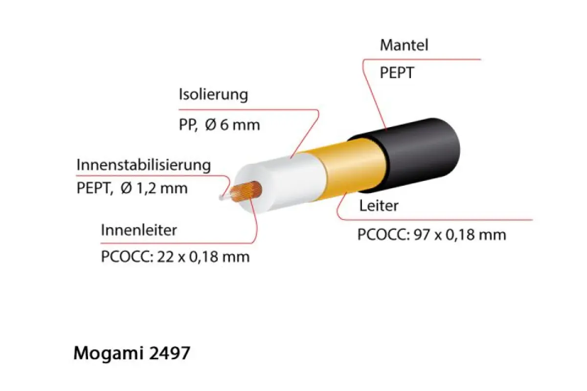 Mogami 2497 HiFi-Kabel, Ø 8,0 mm, schwarz, 50m Rolle