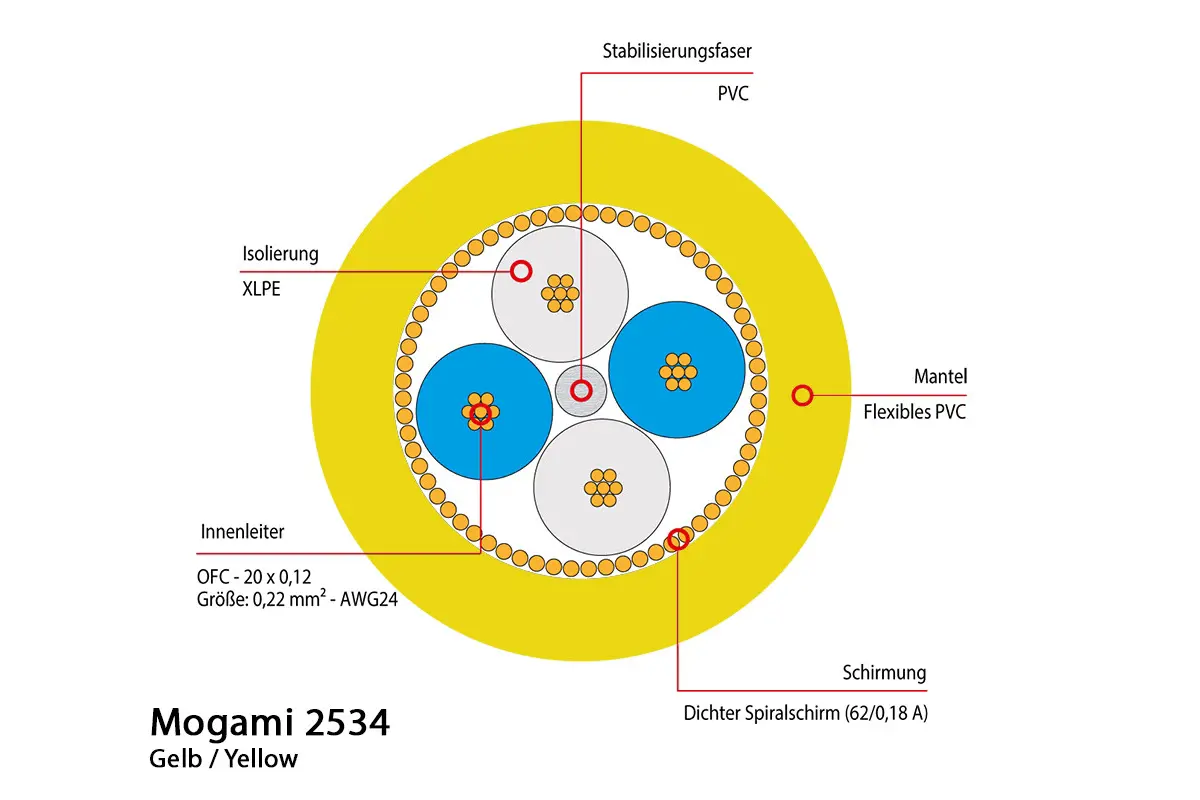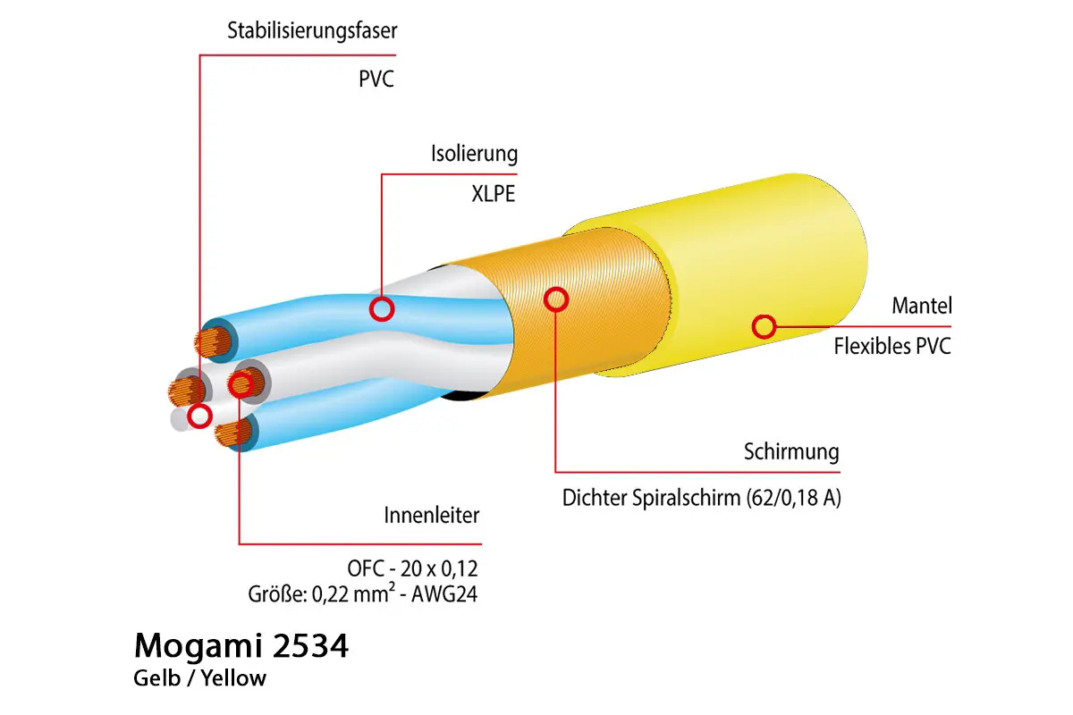 Mogami 2534 Mikrofonkabel, Neglex Quad, Ø 6,0 mm, gelb, 50m Rolle