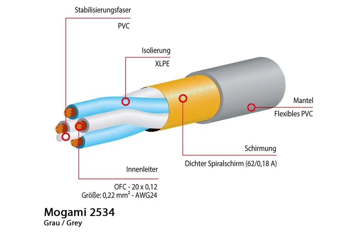 Mogami 2534 Mikrofonkabel, Neglex Quad, Ø 6,0 mm, grau, 50m Rolle