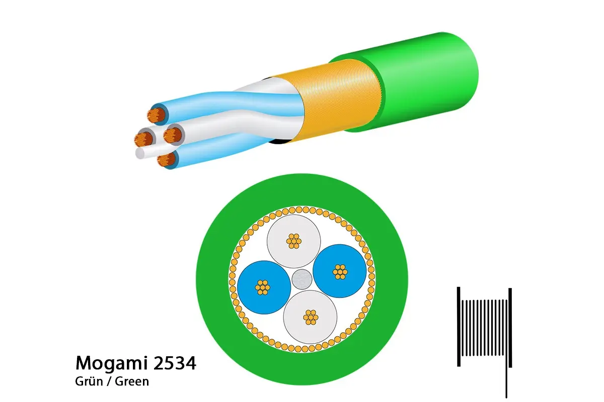 Mogami 2534 Mikrofonkabel, Neglex Quad, Ø 6,0 mm, grün, 200m Spule
