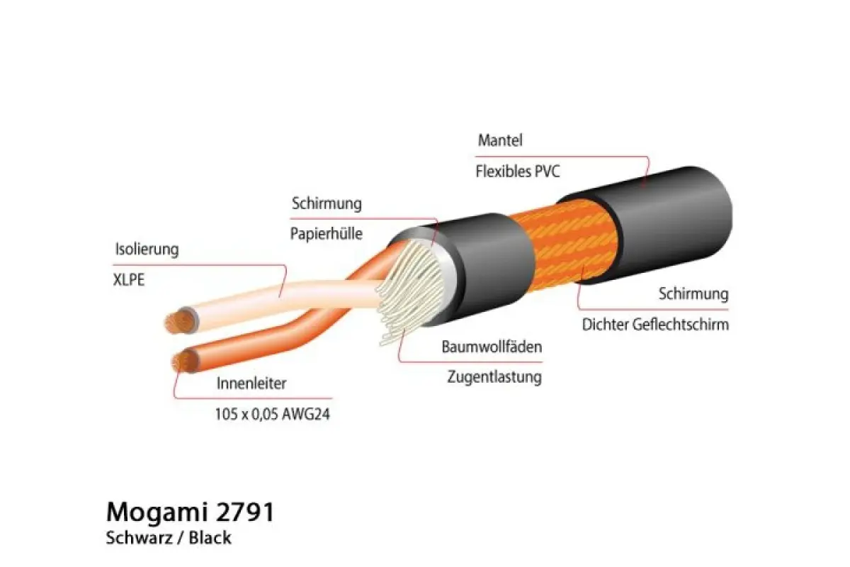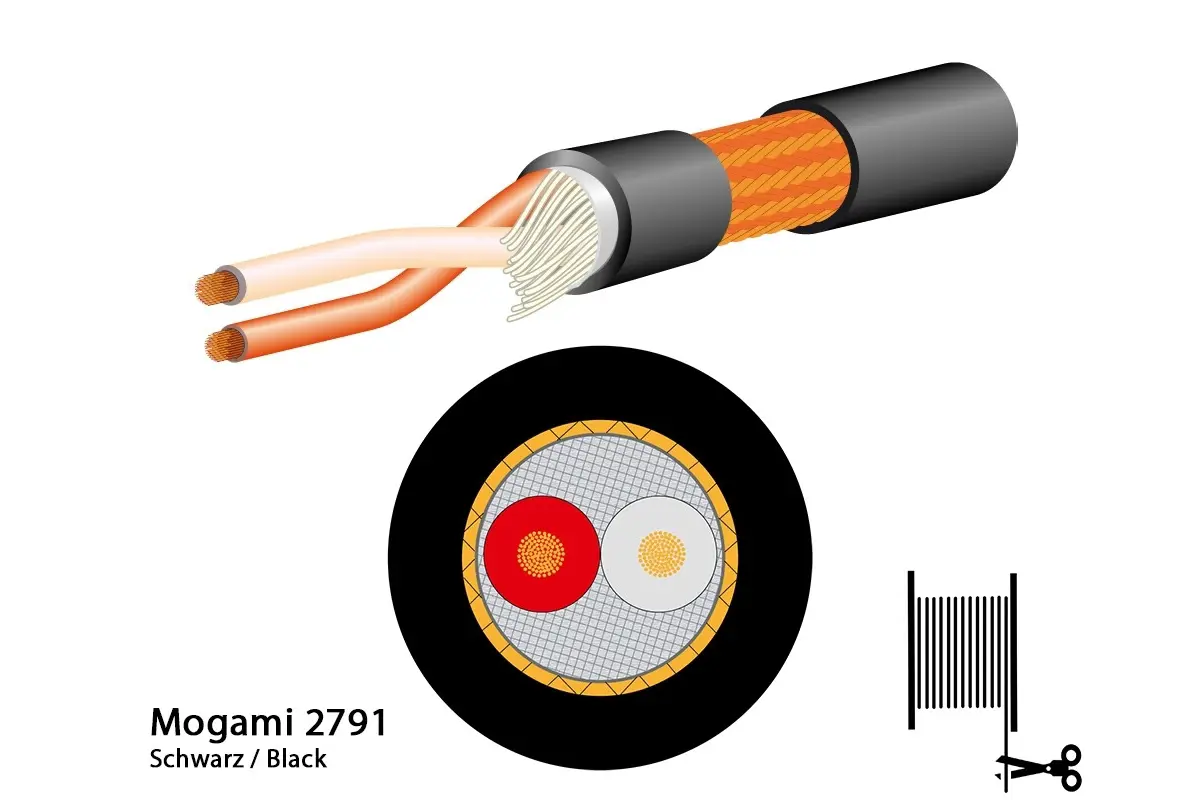 Professionelles Mikrofonkabel: Mogami 2791 Broadcast, symmetrisch, Serie: Live. Speziell für Bühne und Rundfunk entwickelt.