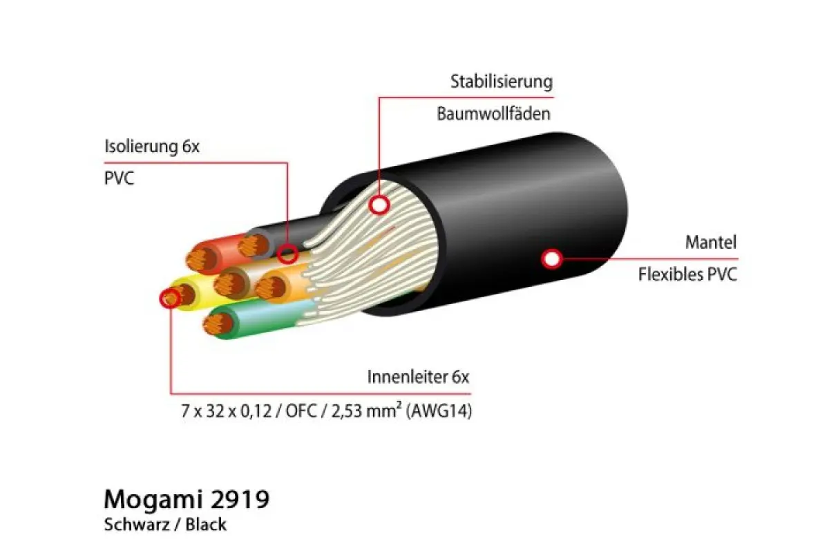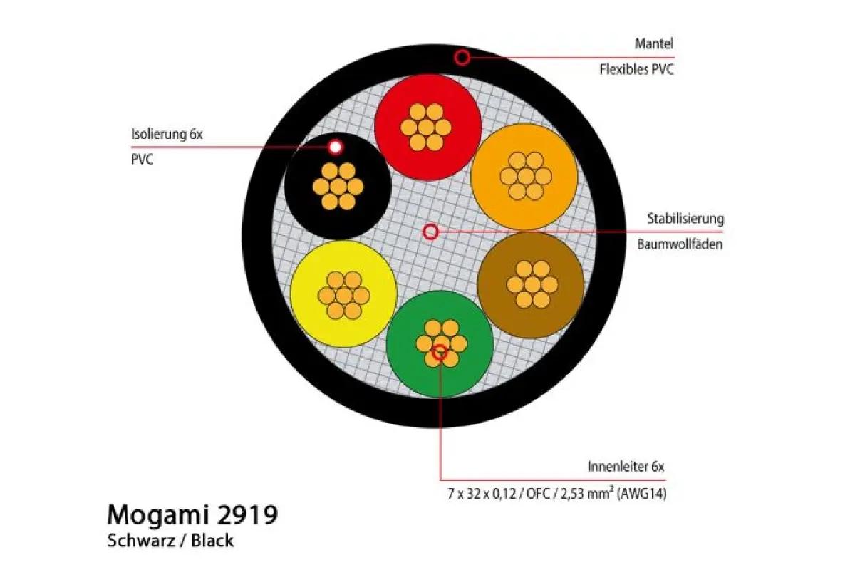 Mogami 2919 Lautsprecherkabel, 6-Wege, 6x 2,5mm2, Ø 12,8 mm, 50m Rolle