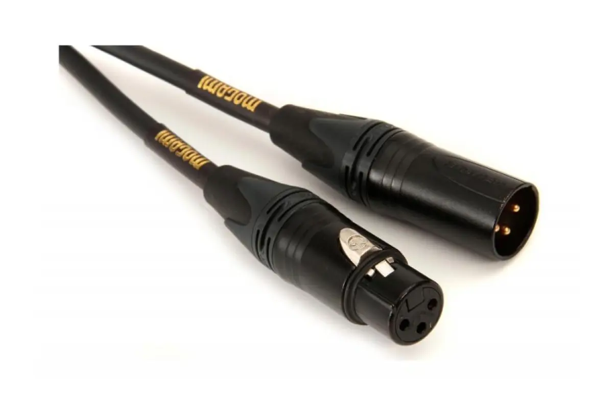 Neutrik XLR-Male Neutrik XLR Female, schwarz-verchromte Gehäuse, goldbeschichtete Kontakte. Mogami 2534 NEGLEX Quad High Definition Kabel, schwarz, symmetrisch