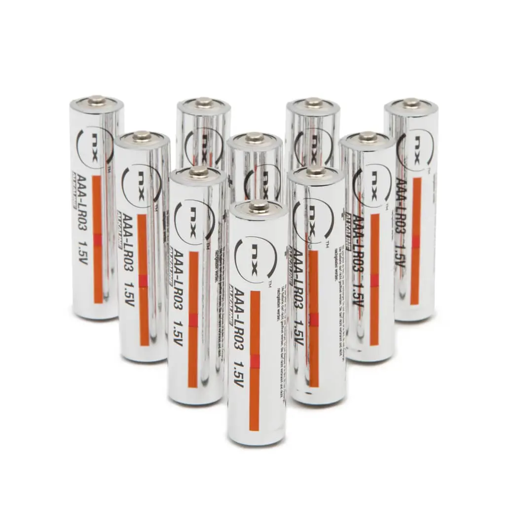 AAA-Größe, Alkaline-Batterien. Kosten-effektiv mit 1,5V. Erhältlich in Packungen mit 10 und 100 Batterien.