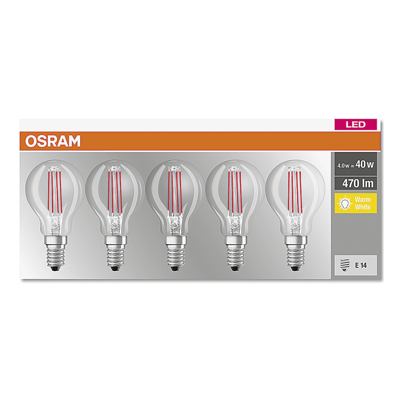 Osram LED Base Classic P Filament E14 240V 4W 470lm klar WW Box à 5 Stück