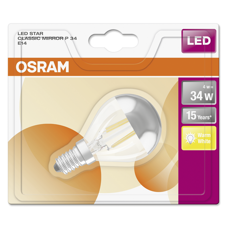 Osram LED Retrofit Classic P Mirror E14 240V 4W 350lm WW