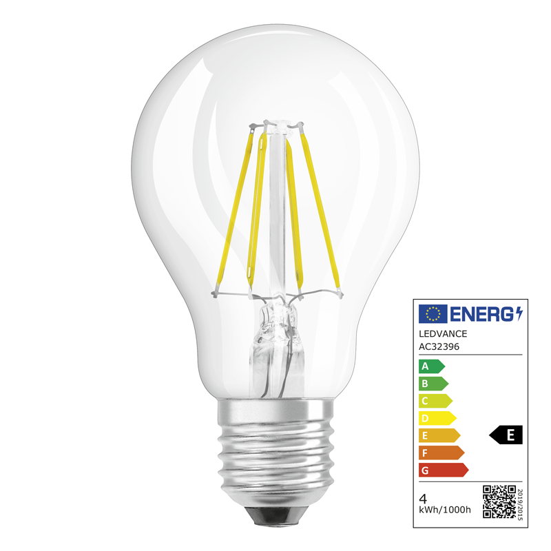 Osram LED Star Retrofit Classic A, LED Lampe, E27 240V 4W (40W) 470lm klar, 2700K, warm white, klassische Form, Ø 60mm, Länge 105mm, VPE 2 Stück