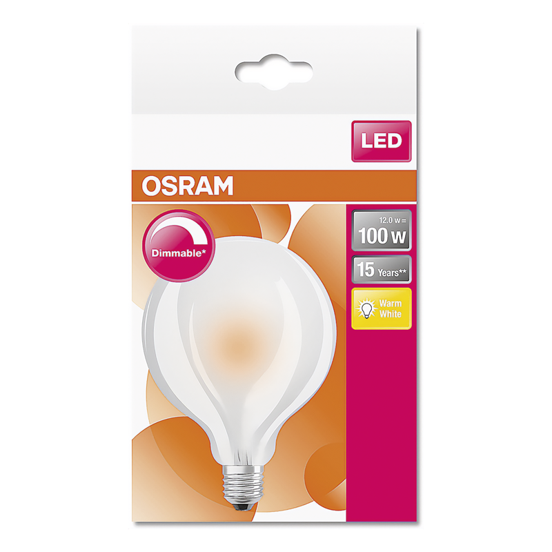 Osram LED Superstar Retrofit Classic Globe, LED Lampe, E27 240V 12W (120W) 1521lm matt, 2700K warm white, dimmbar, Globe-Form, Ø 95mm, Länge 138mm