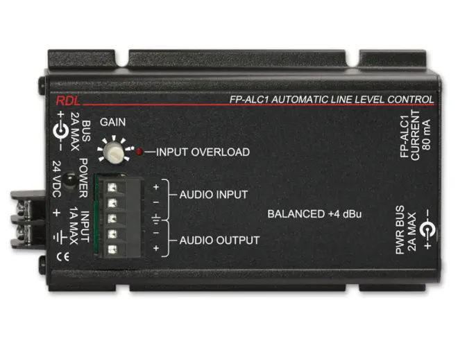 Das RDL-FP-ALC1 ist die ideale Wahl für Anwendungen in denen gleichbleibende Signalpegel von verschiedenen Audioquellen benötigt werden. Stromversorgung wird entweder über Steckverbindungen hergestellt oder durch die DC Eingangsbuchse die seitlich am Gehäuse angebracht ist.