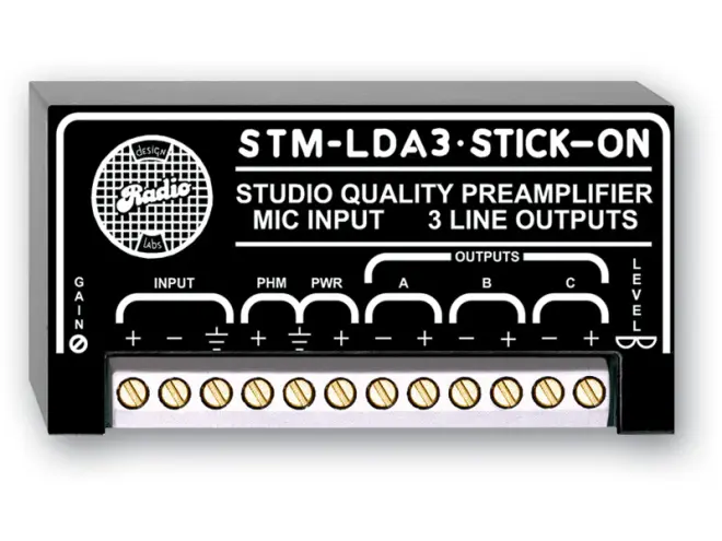 Ein Wendelpotentiometer erlaubt genaue Einstellung optimaler Arbeitspegel. Jeder der 3 Linepegel- Ausgänge kann symmetrisch oder asymmetrisch betrieben werden. Die von RDL speziell entwickelte diskrete Eingangsstufe bietet sehr geringes Rauschen. Das RDL-STM-LDA3 erlaubt 24 V Phantomspeisung für Kondensator-Mikrofone wenn der PHM Anschluss an die Betriebsspannung angelegt wird.
