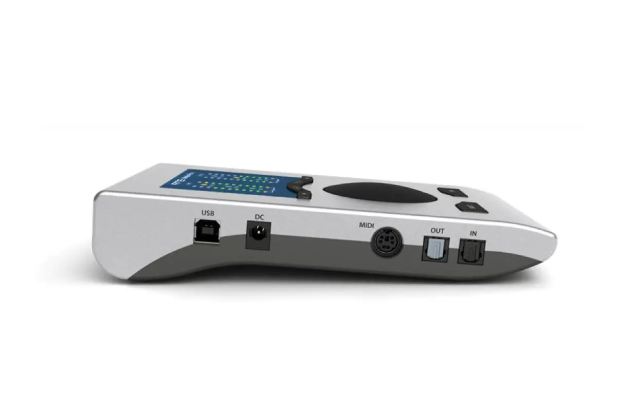 Im Babyface Pro FS wurden mehr Verbesserungen implementiert: +19 / +4 dBu Schalter auf der Unterseite bietet einen direkten Weg zur Reduzierung des Ausgangspegels, verbessert so den SNR für empfindliche Aktivmonitore, vermeidet Verzerrungen / Übersteuerungen und hilft, TotalMix FX Fader nahe 0 dB zu halten, anstatt hohe Abschwächungen, vollständige SteadyClock FS-Schaltung wie im ADI-2 Pro FS für niedrigsten Jitter und höchste Jitter-Immunität, 3,5 mm TRS-Telefonausgangsleistung steigt von 70 mW auf 90 mW. Der Klirrfaktor beider Kopfhörerausgänge wurde um bis zu 10 dB verbessert, verwendet jetzt dieselben Ausgangs-Operationsverstärker wie der ADI-2 Pro. Ausgangsimpedanz von 3,5 mm TRS von 2 Ohm auf 0,1 Ohm gesenkt, SNR der Mikrofoneingänge von 112,2 dB auf 113,7 dB verbessert, SNR der TRS-Line-Eingänge von 114 dB auf 116,3 dB (120 dBA) verbessert, THD Line-Eingänge um 8 dB verbessert, 6 Samples weniger Latenz auf der AD-Seite durch neuen ADC (5 Samples AD, 7 Samples DA. Schneller geht’s nicht…). Alle oben genannten Verbesserungen wurden erreicht, ohne den Stromverbrauch des Gerätes zu erhöhen, K-Slot für Diebstahlschutz.