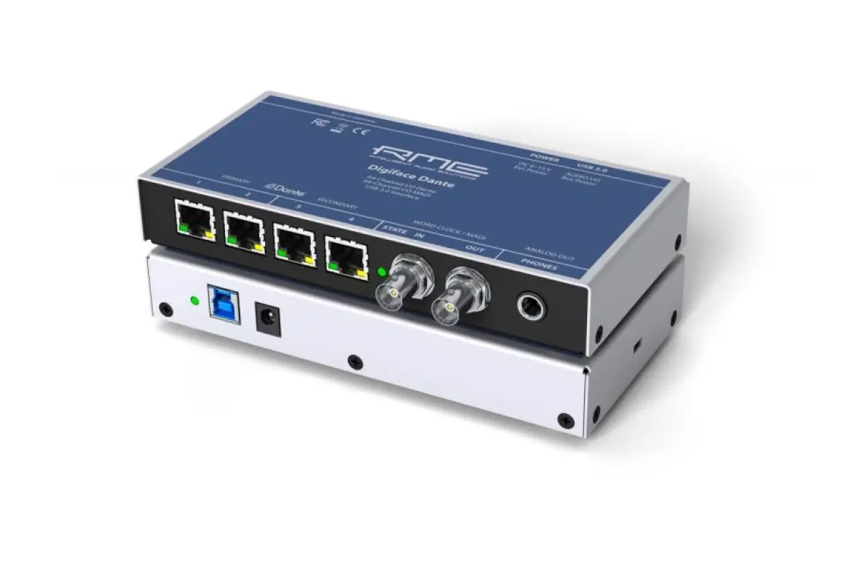 Das Dante Audio-over-IP-Protokoll wurde vom australischen Unternehmen Audinate entwickelt und ermöglicht die unkomprimierte Übertragung digitaler Audiosignale mit geringer Latenzzeit über lange Distanzen. Um die wachsende Beliebtheit und Präsenz von Dante-Lösungen im professionellen Audio-Bereich noch besser abzudecken, fügt das kompakte Digiface Dante USB 3.0/Dante-Interface von RME der bislang erhältlichen, internen Dante-PCIe-Karte eine externe Option für den vollständig mobilen Betrieb hinzu. Zum Betrieb des Digiface Dante können Anwender sowohl auf einen externen Netzteilanschluss als auch auf USB-Bus-Power zurückgreifen.