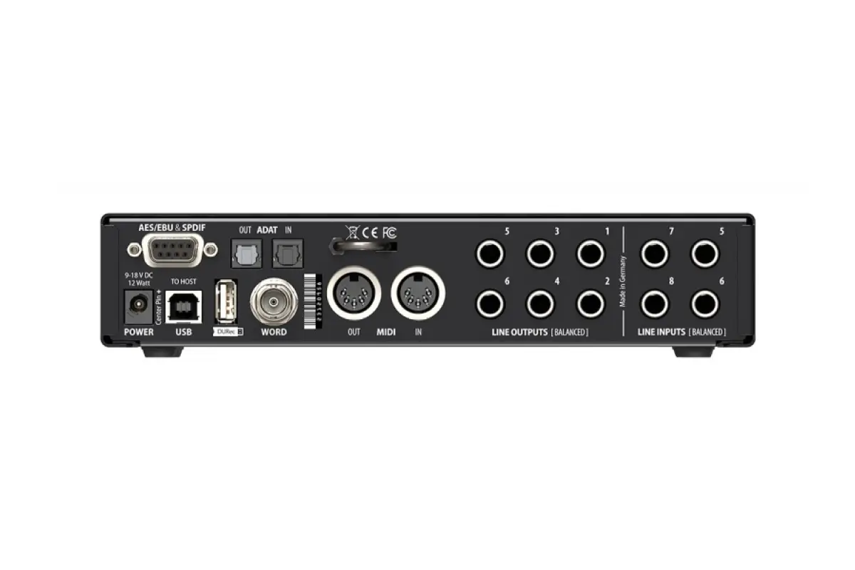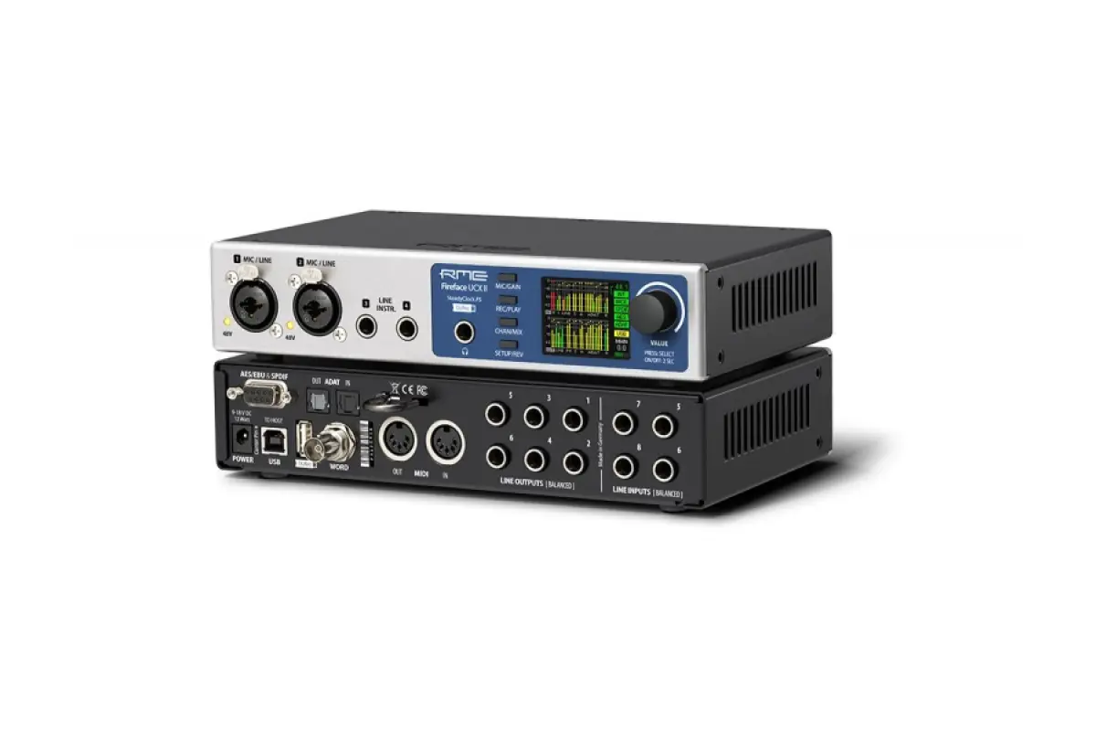 Das Fireface UCX II ist eine hoch integrierte Pro-Audio Lösung in einem ultra-kompakten Format für Studio- wie Live-Betrieb. Es steht in der langen RME-Tradition ultra-kompakter High-End-Interfaces, die in einem Halb-19-Zoll-Gehäuse Features, Funktionalität und Qualität vereinen, für die andere Hersteller mehrere volle Rackbreiten benötigen.Mit bis zu 20 Aufnahme- und 20 Wiedergabekanälen, SteadyClock FS, leistungsstarken Mikrofoneingängen, eingebautem parametrischem EQ, USB Direct Recording und voller Stand-Alone-Funktionalität verkörpert das brandneue Fireface UCX II die Essenz von Freiheit, Flexibilität und Leidenschaft.Derzeit bietet kein existierendes Audio-Interface mehr Konnektivität und Funktionalität im Half-Rack-Format. KONNEKTIVITÄT: 20 Eingangs- / 20 Ausgangskanäle, 8 x Analog I/O, 2 x Mic/ Line Preamps (digital steuerbar), 2 x Line / Instrument Eingänge (digital steuerbar), AES/EBU und SPDIF I/O, ADAT I/O, Wordclock I/O (umschaltbar), MIDI I/O, USB 2.0 (USB 3-kompatibel).