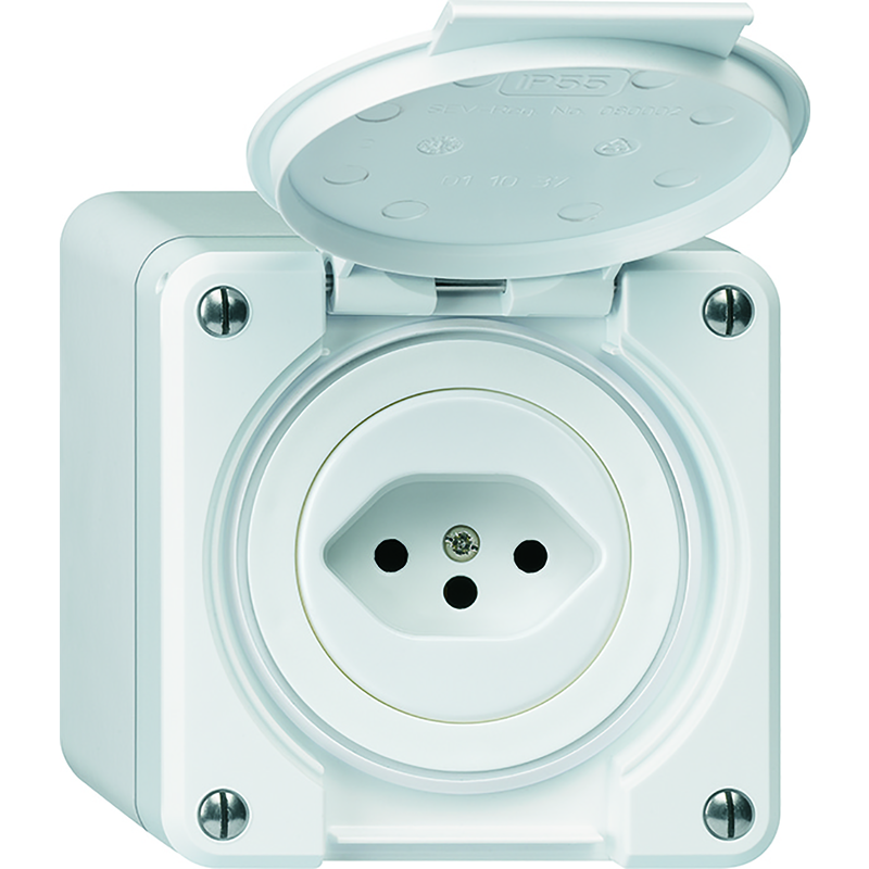 ROBUSTO Aufputz Nass-Steckdose 1x TYP 13, mit QuickConnect Steckklemmen, IP21, weiss