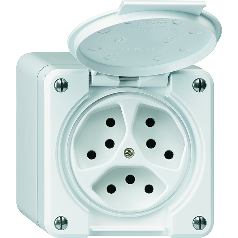 ROBUSTO Aufputz Nass-Steckdose 3x TYP 13, mit QuickConnect Steckklemmen, IP21, weiss